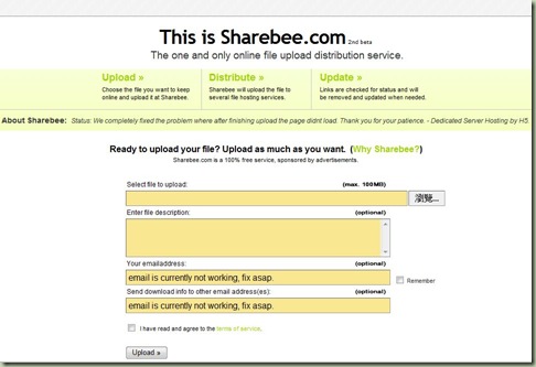 她步算一個正式的網路空間,Sharebee的優點是會將你上傳的檔案,再分別幫你傳到